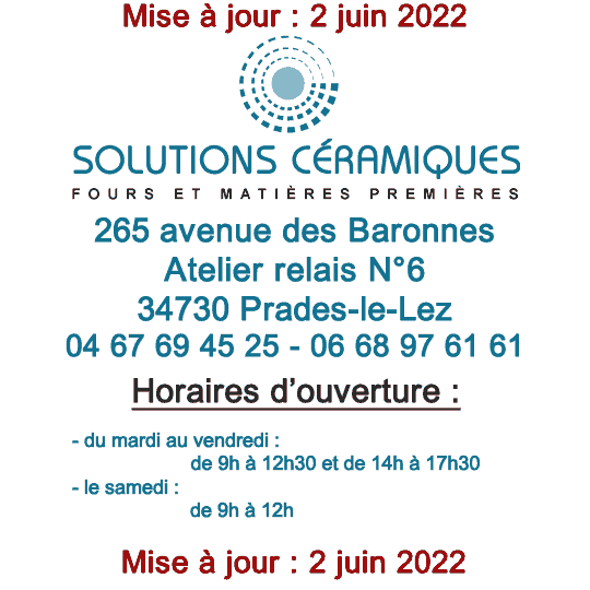 Catalogue des produits et matériels pour la céramique. Mise à jour le 2 juin 2022.