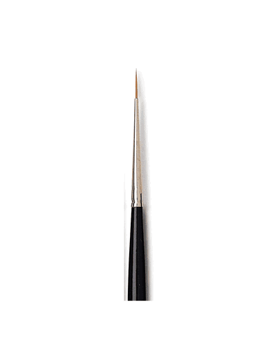 Pointe en poils de martre pure avec virole argenté et manche vernis noir à bout gris.